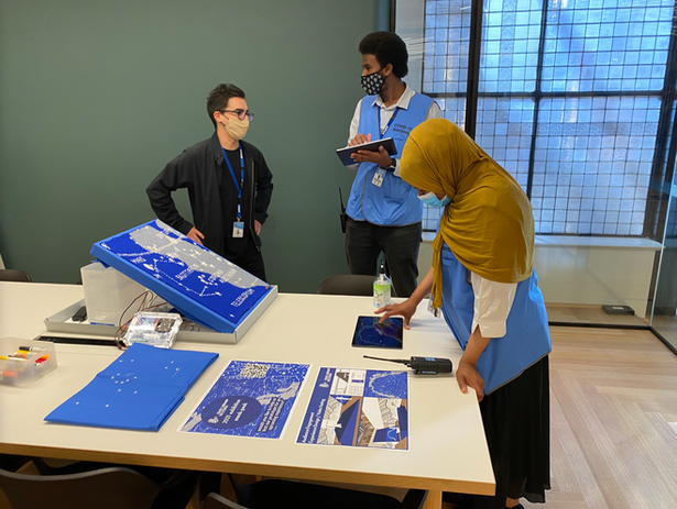 Map mode: Visitors tap on the constellation and it lights up the corresponding LEDs on the map. On-screen, visitors can read information about constellations or specific stars and planets.
